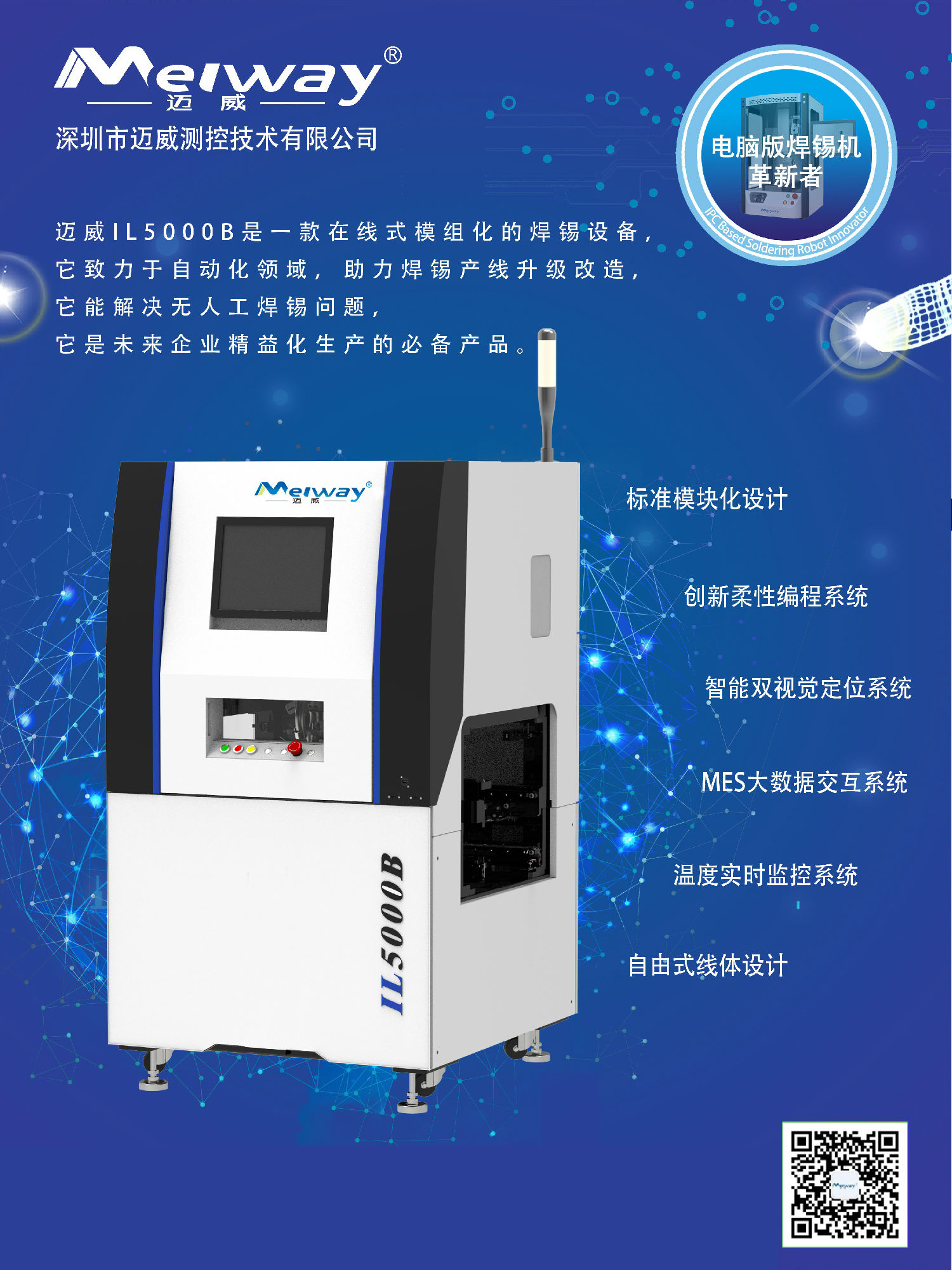 在本次展會中,邁威將展出IL5000B智能模組式在線焊錫機,它是邁威持續創新的成果,它將提高廣大電子產品制造商的核心競爭力。